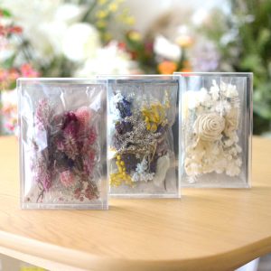 結婚式の贈呈品や、母の日、お誕生日のギフトに。お花の自然な風合いをこぶりなBOXにめいっぱいつめました